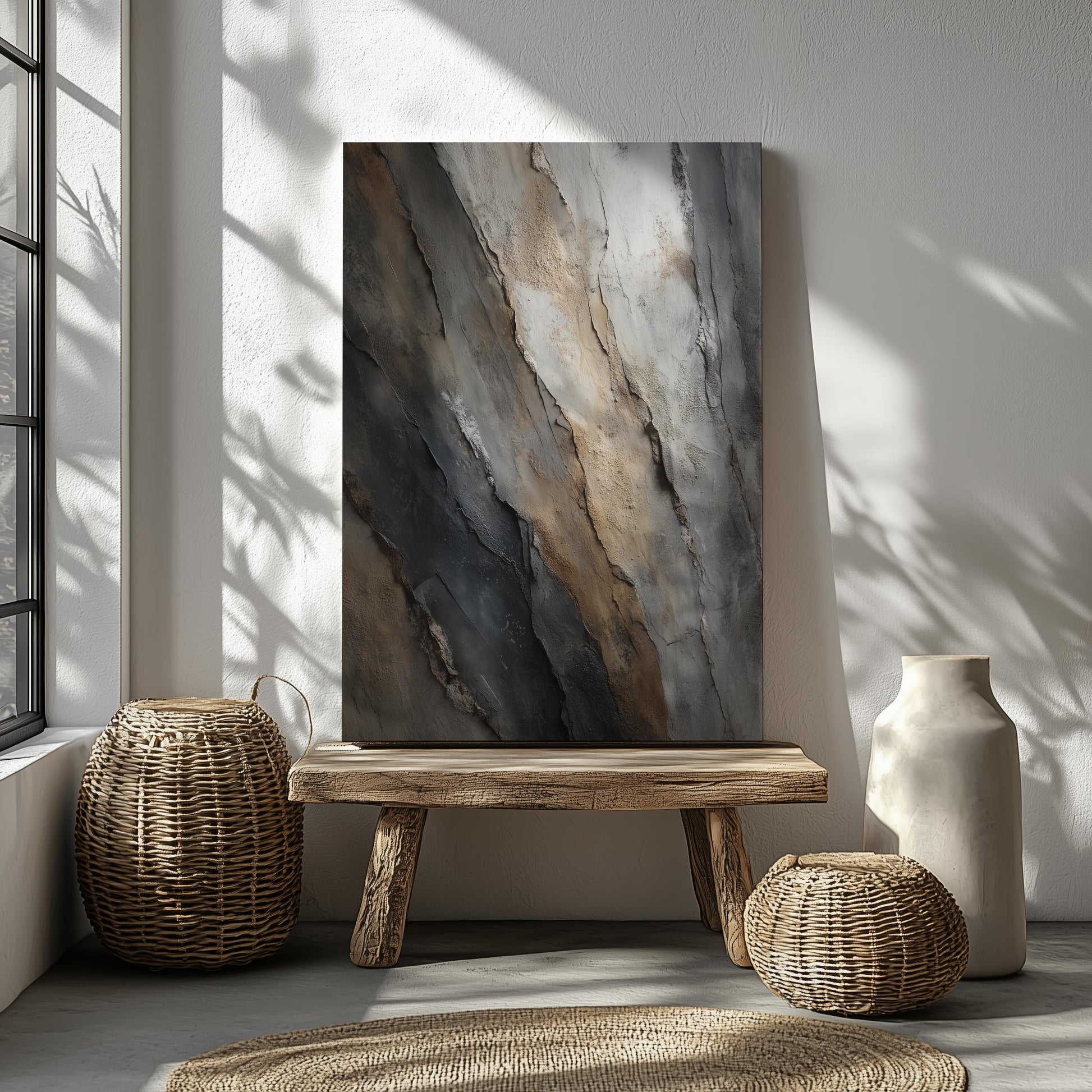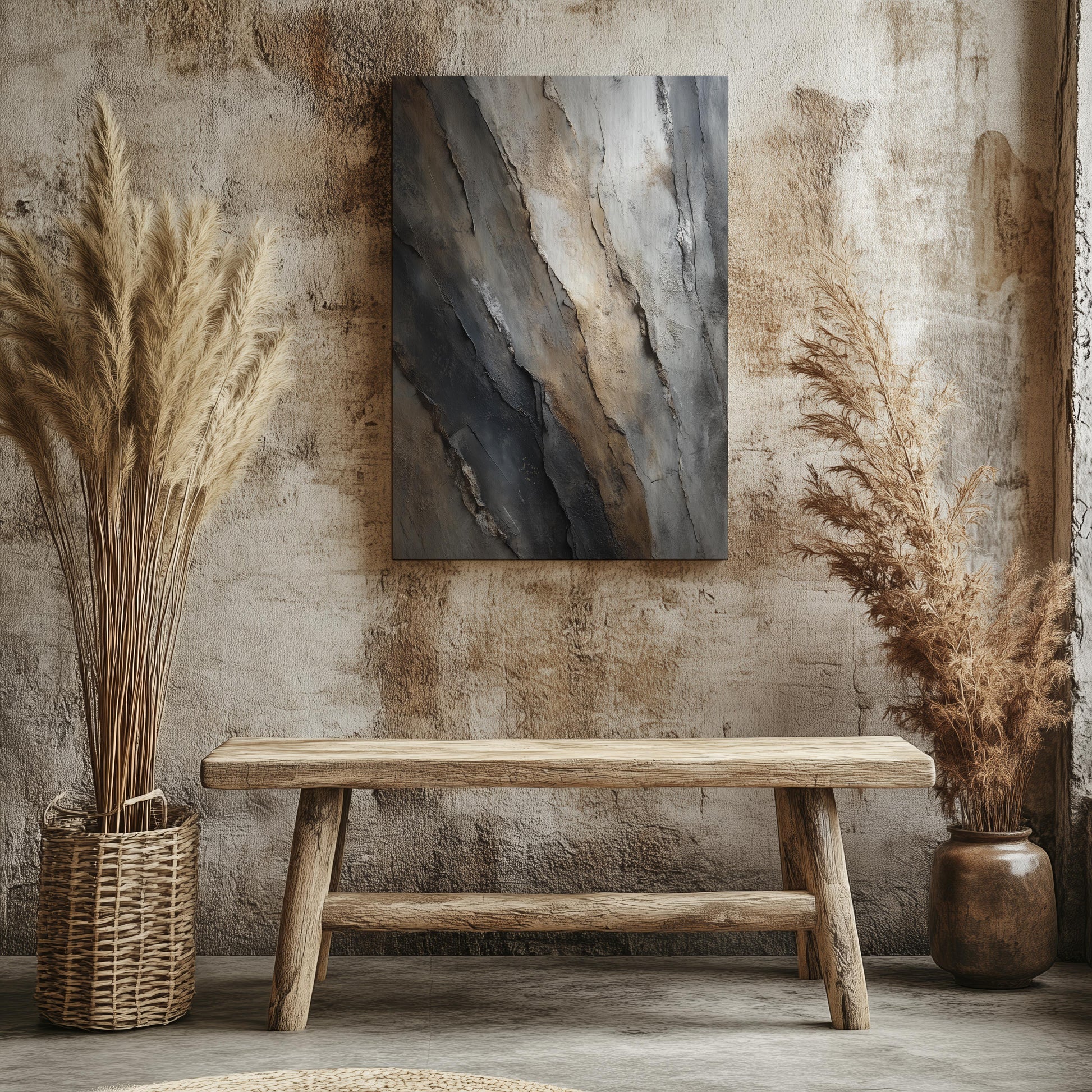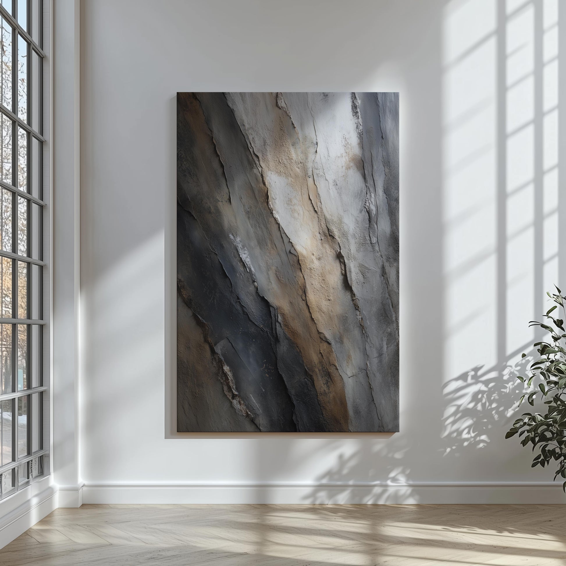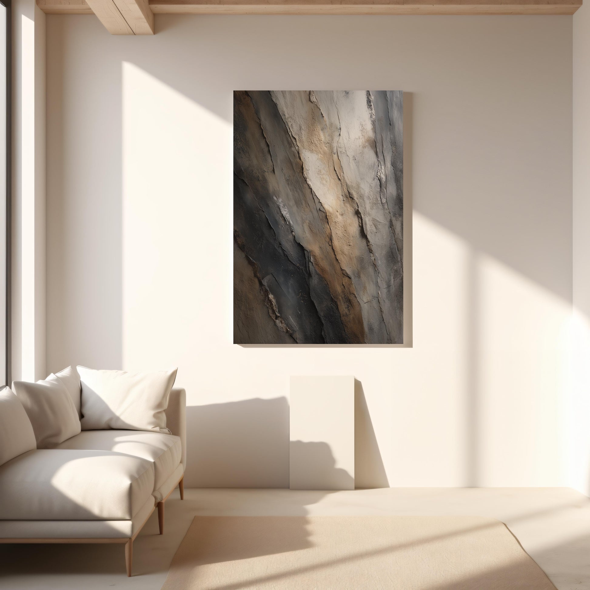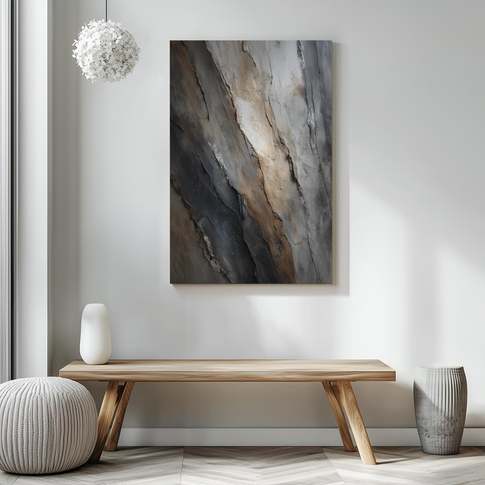 Available in multiple sizes, orientations (horizontal, vertical, and square), and three frame color options, Slate Divide adapts seamlessly to your surroundings, whether as a statement piece or a refined complement to existing décor. Sawtooth hanging hardware comes pre-installed for effortless display.