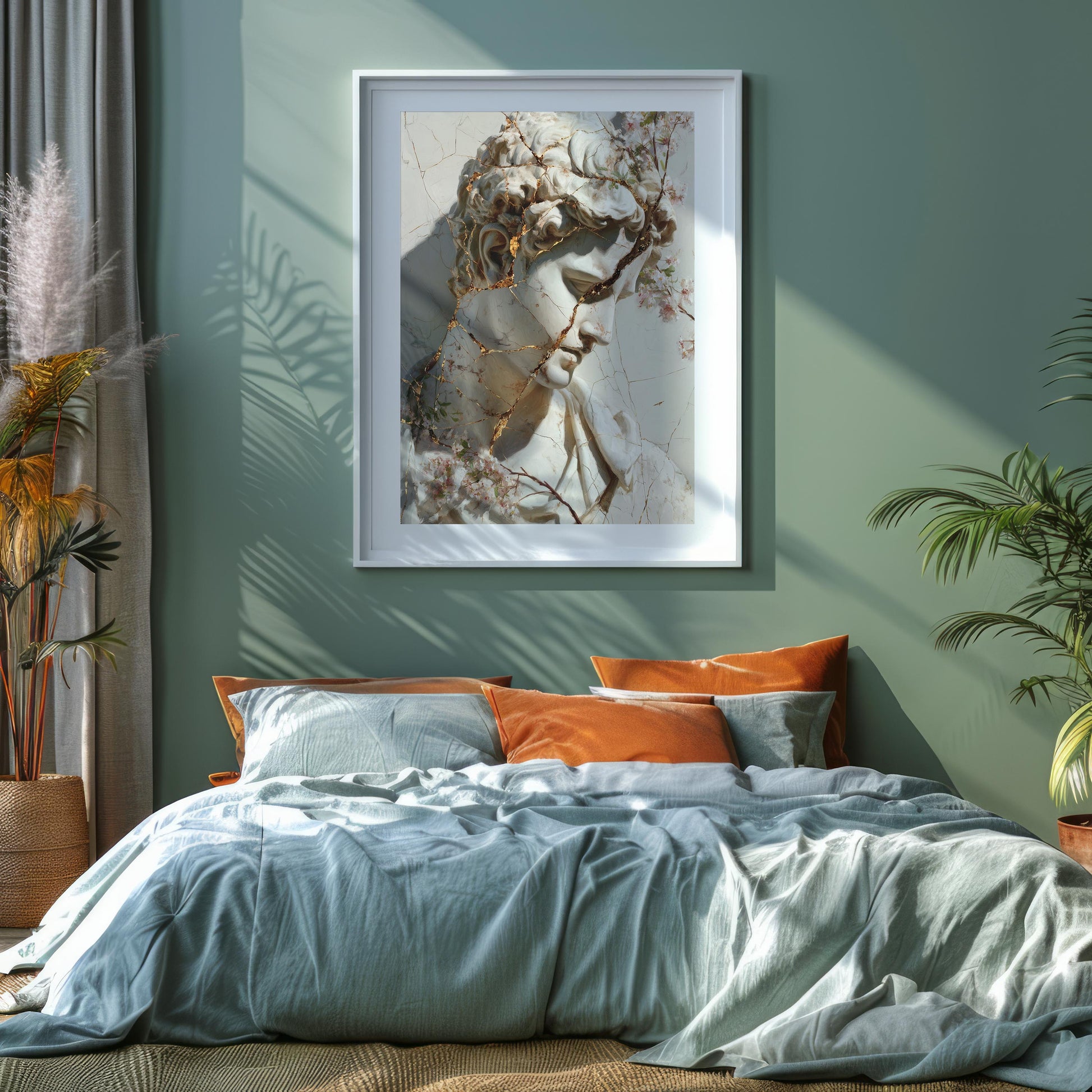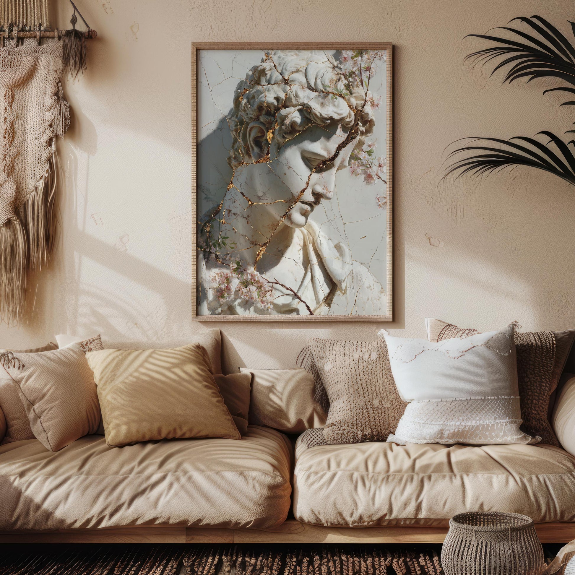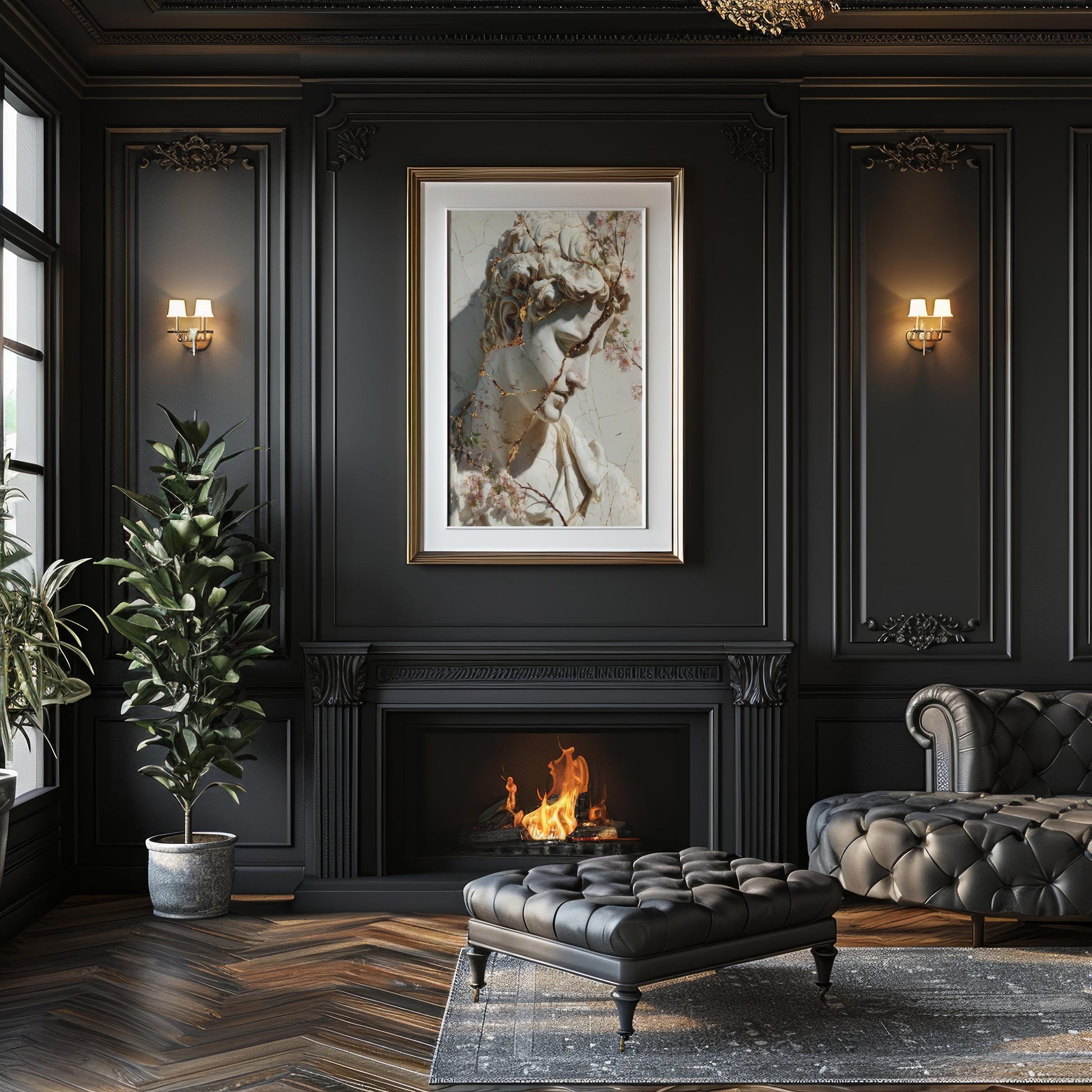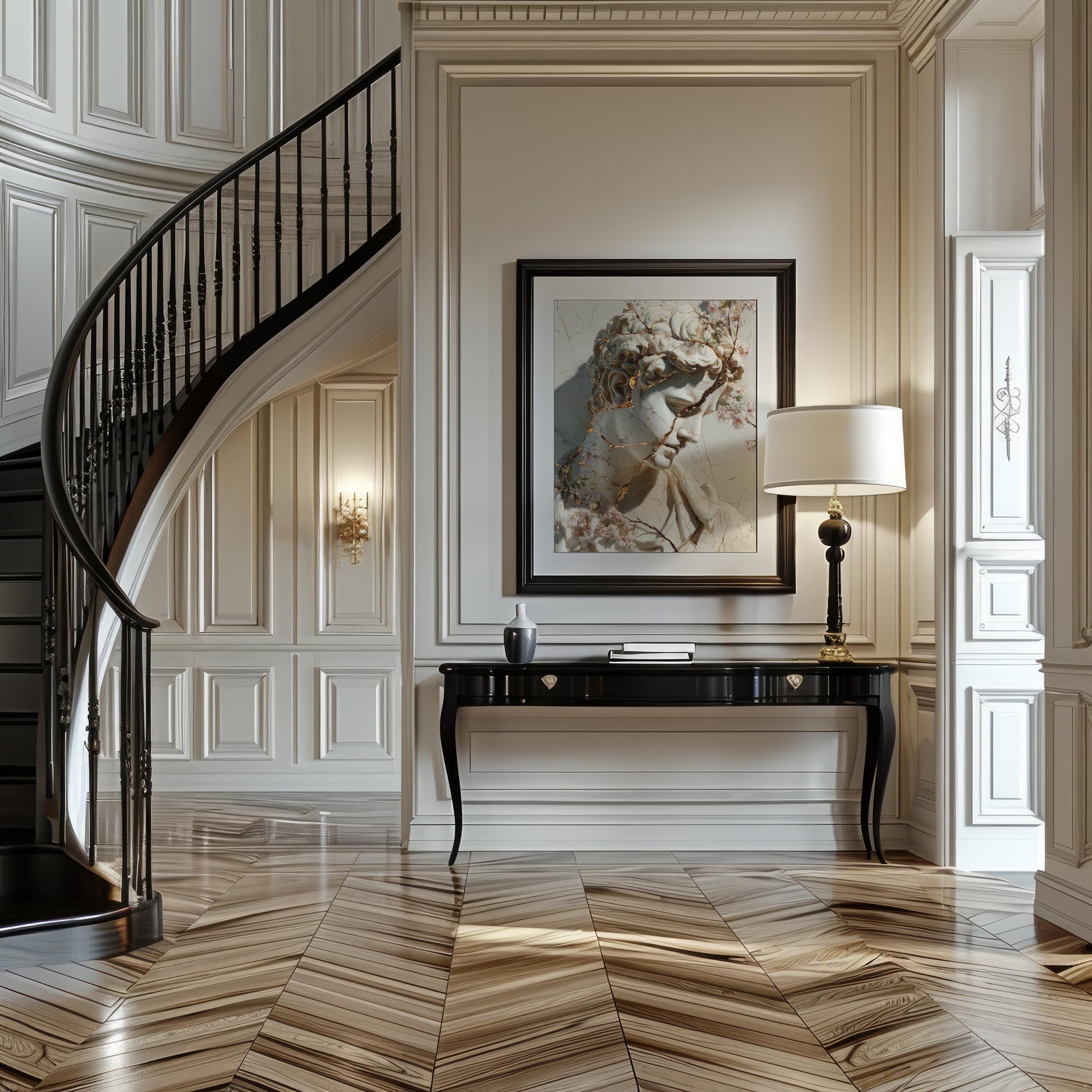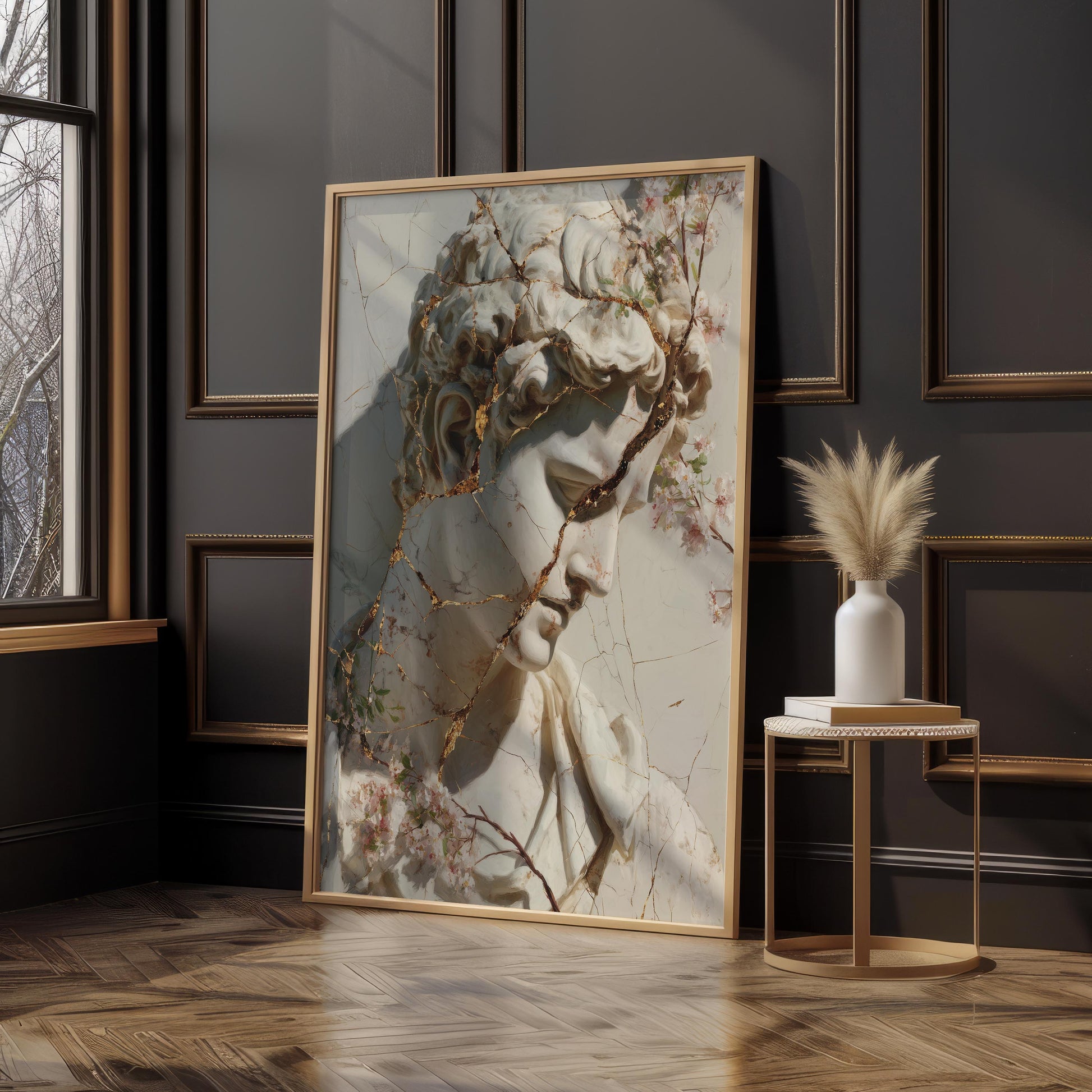 Cracked Marble David with Gold Veins & Blossoms