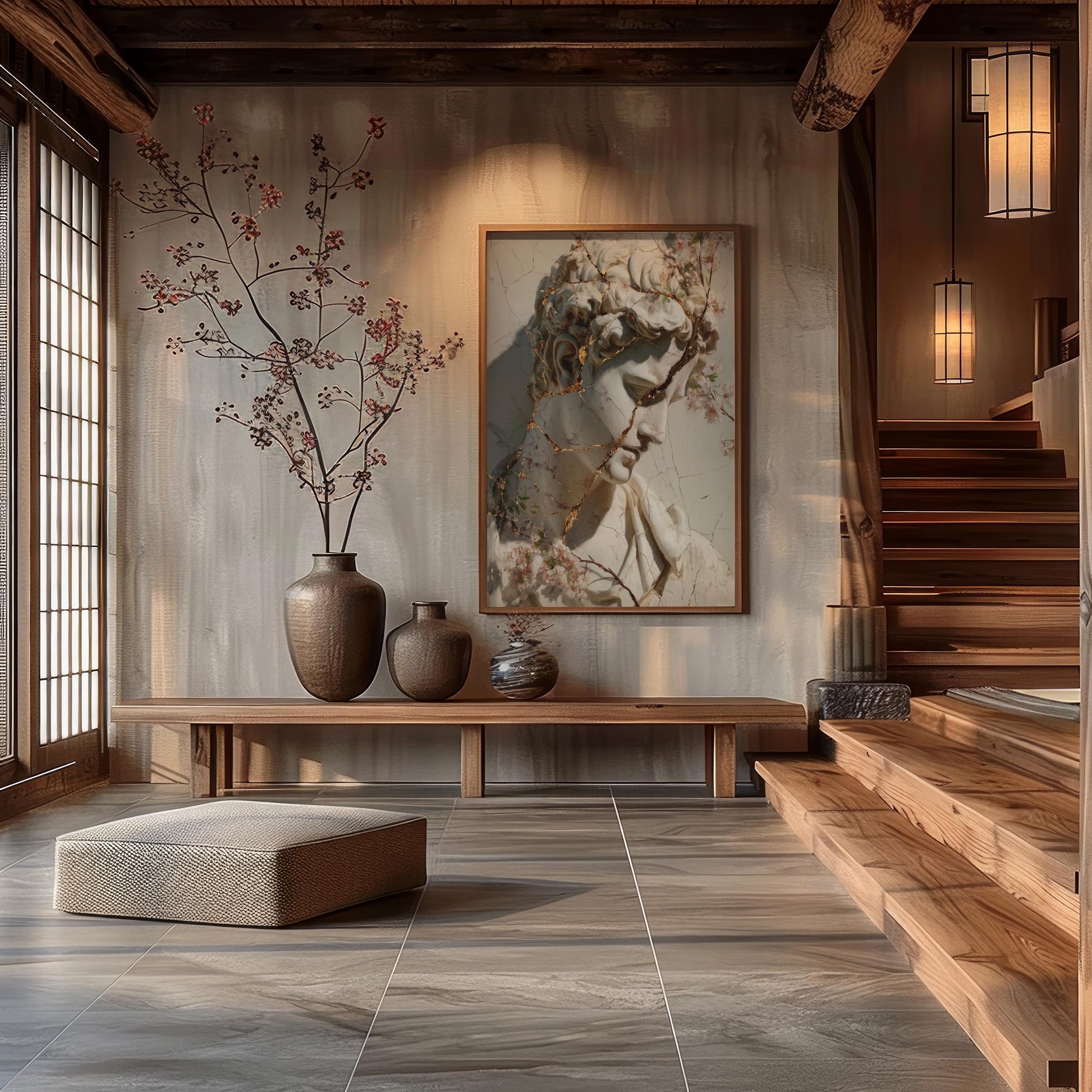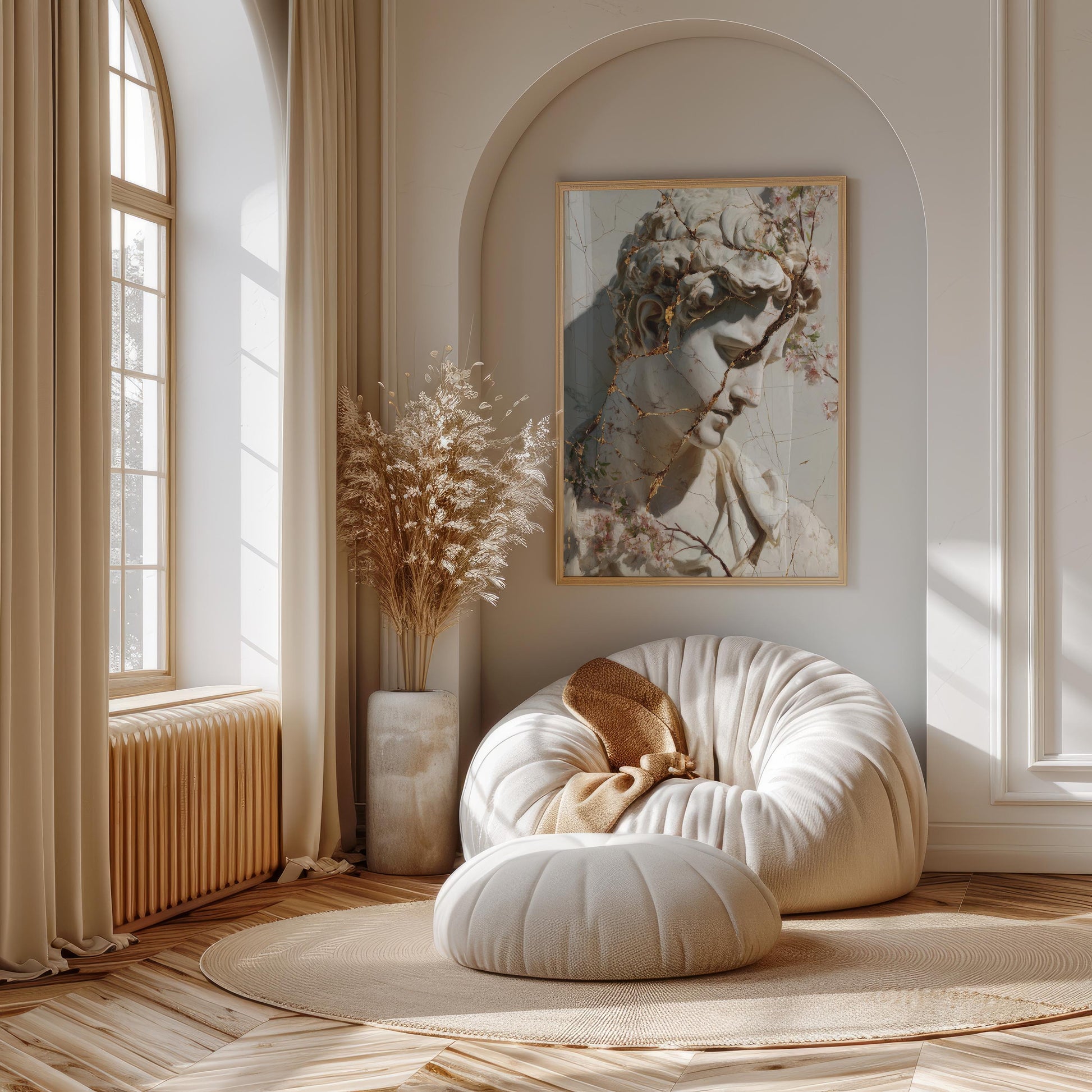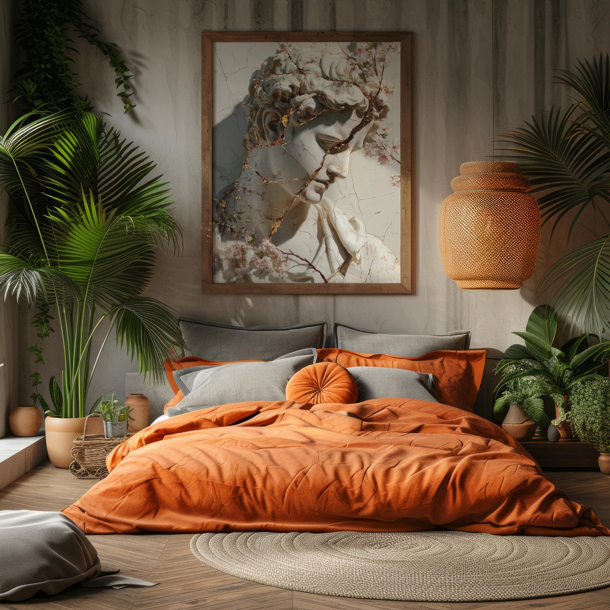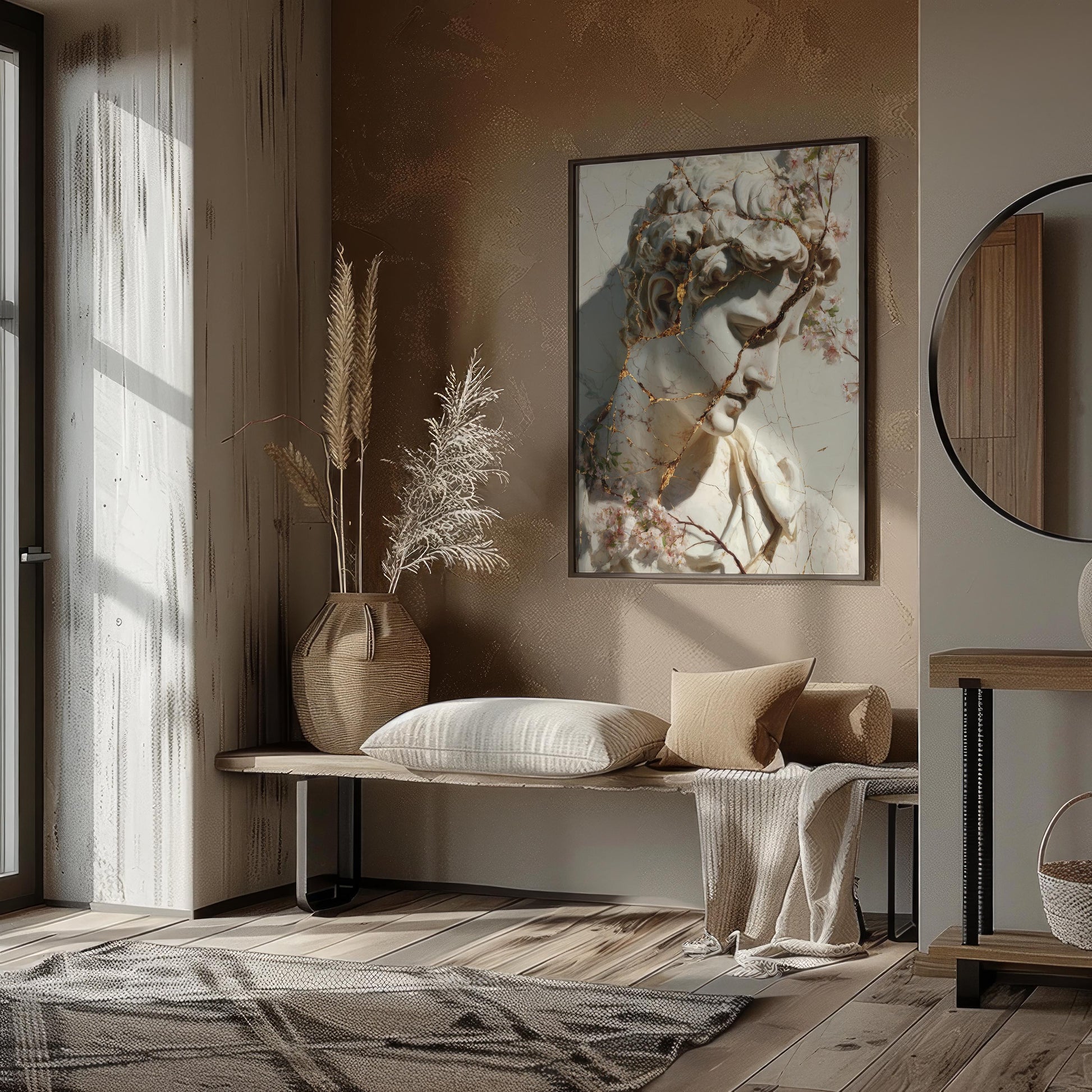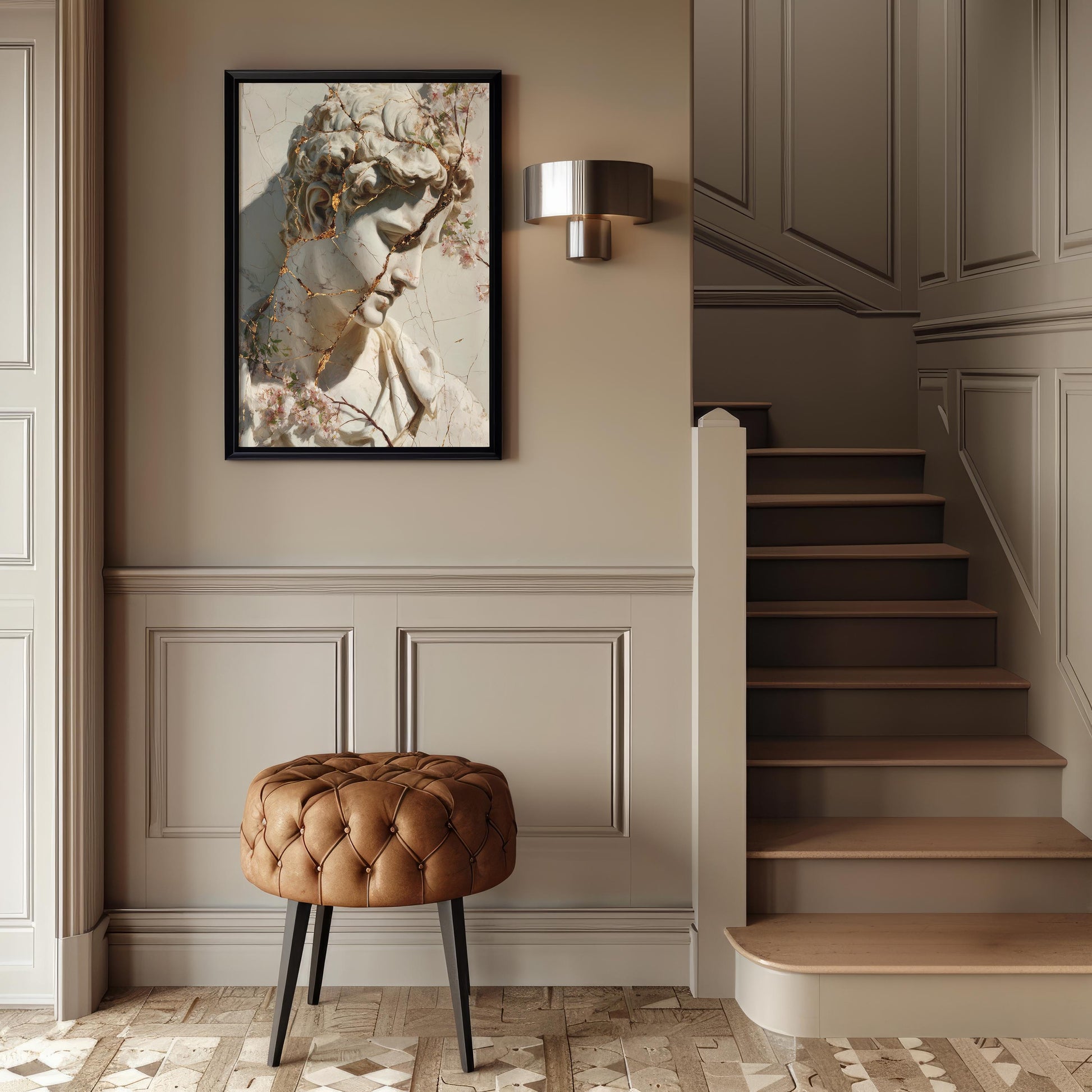 Cracked Marble David with Gold Veins & Blossoms