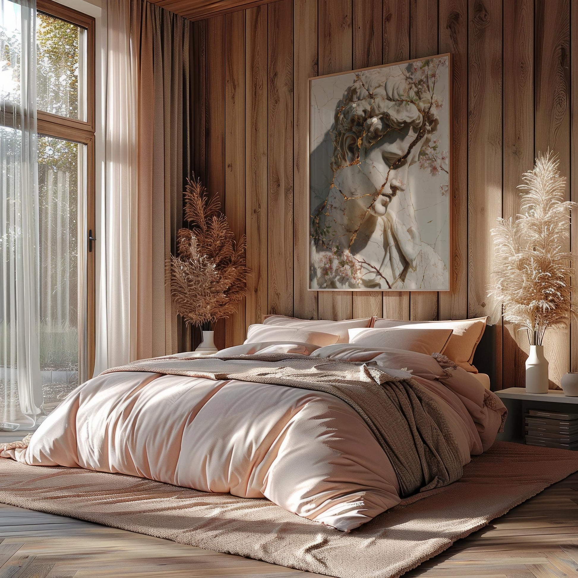 Designed to elevate any interior space, this artwork is presented on a premium cotton-polyester canvas with a special proprietary coating that ensures long-lasting, vibrant colors and crisp detail. The piece is framed in solid pinewood, crafted from sustainably sourced, Forest Stewardship Council (FSC) certified materials—an eco-friendly choice that does not compromise on quality or style.