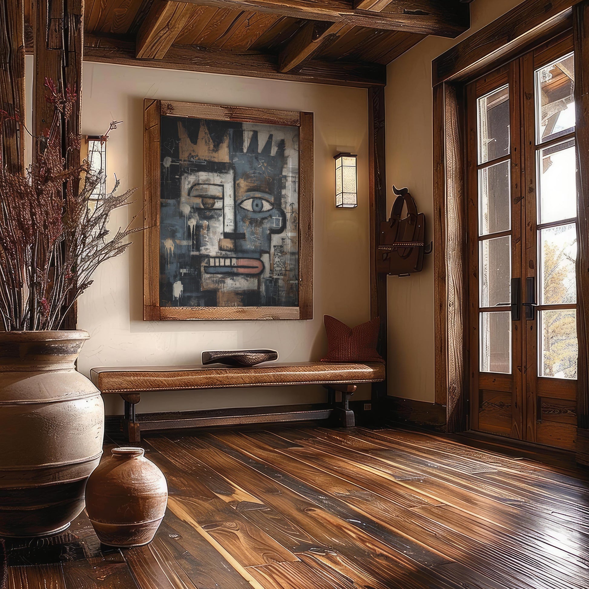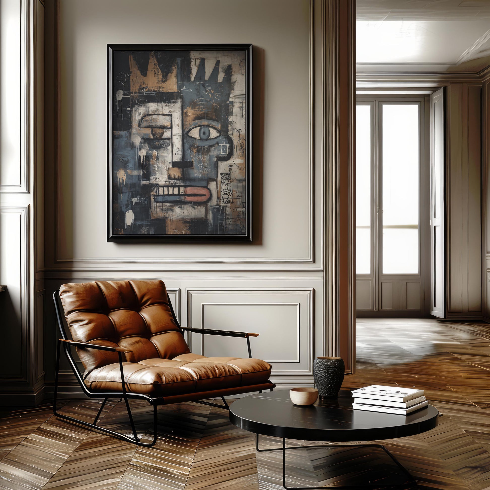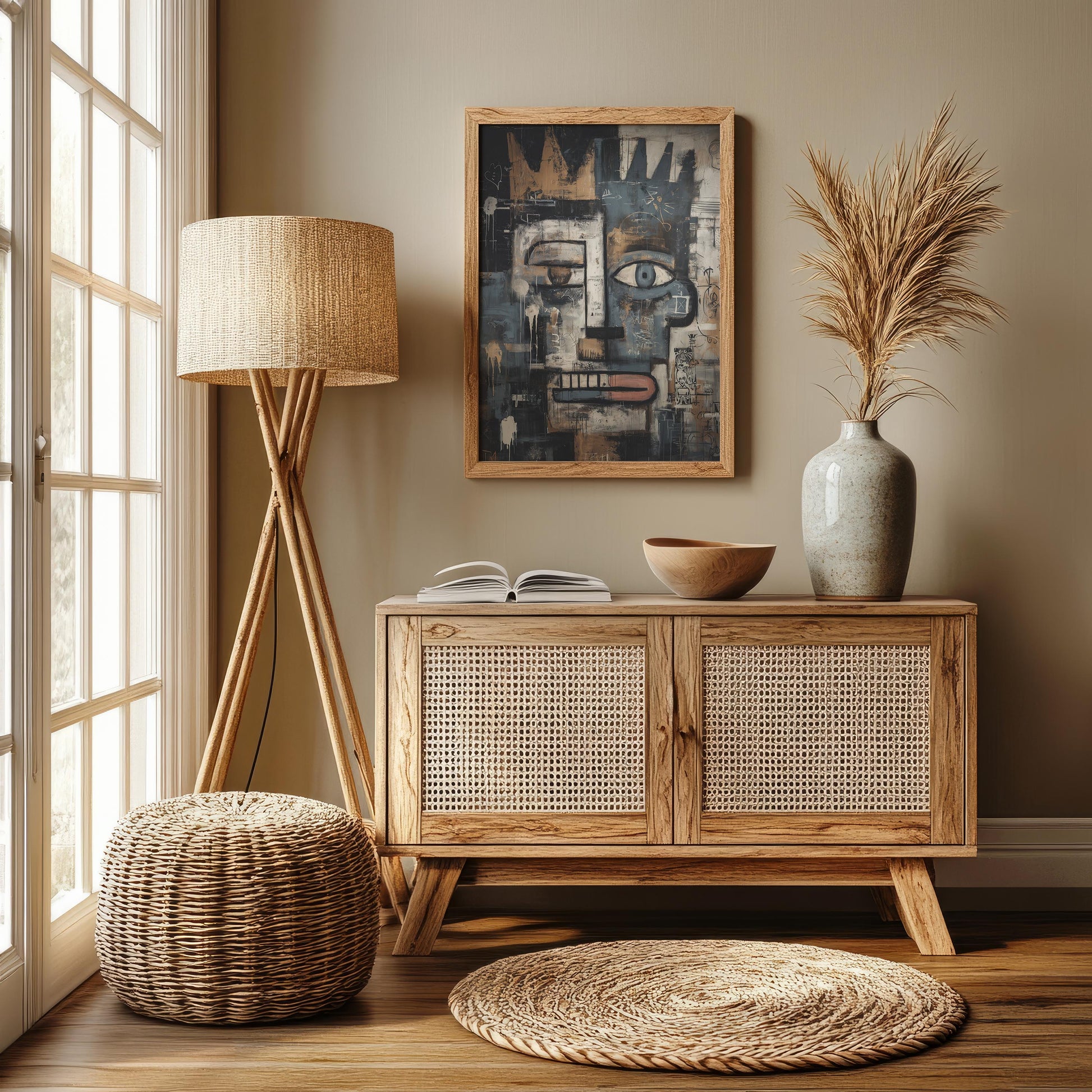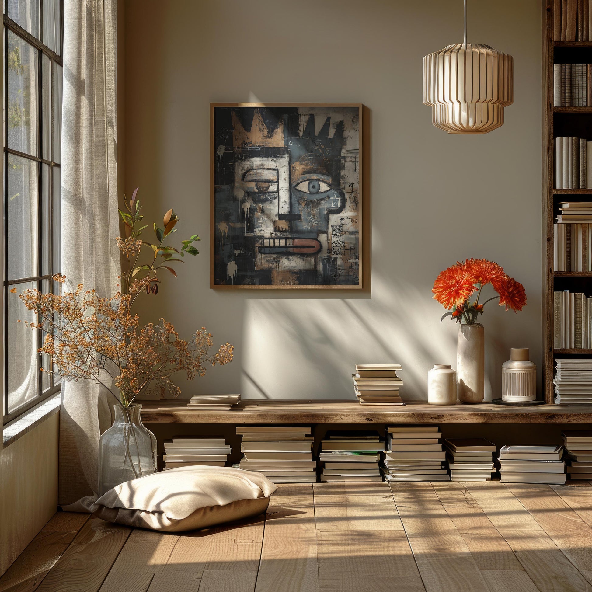 Designed to elevate any interior space, this artwork is presented on a premium cotton-polyester canvas with a special proprietary coating that ensures long-lasting, vibrant colors and crisp detail. The piece is framed in solid pinewood, crafted from sustainably sourced, Forest Stewardship Council (FSC) certified materials—an eco-friendly choice that does not compromise on quality or style.
