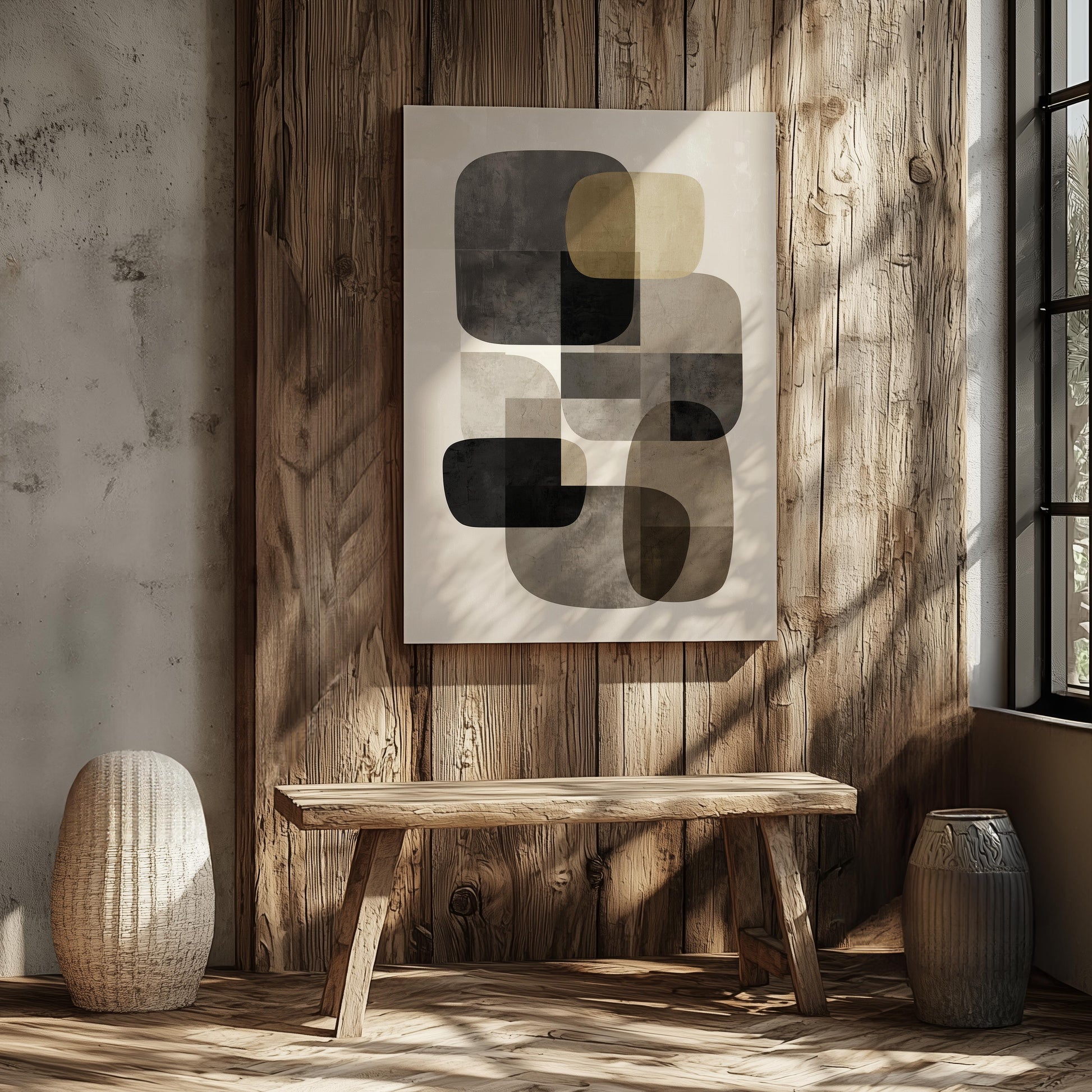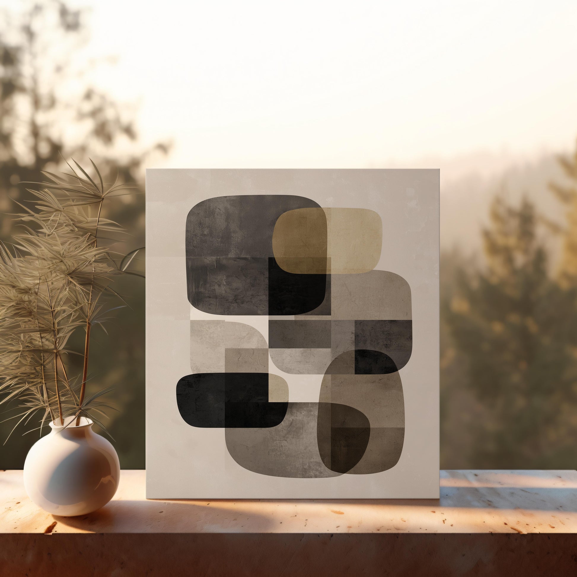 Available in multiple sizes, orientations (horizontal, vertical, and square), and three frame color options, Modern Geometry in Neutral adapts seamlessly to your surroundings, whether as a statement piece or a refined complement to existing décor. Sawtooth hanging hardware comes pre-installed for effortless display.
