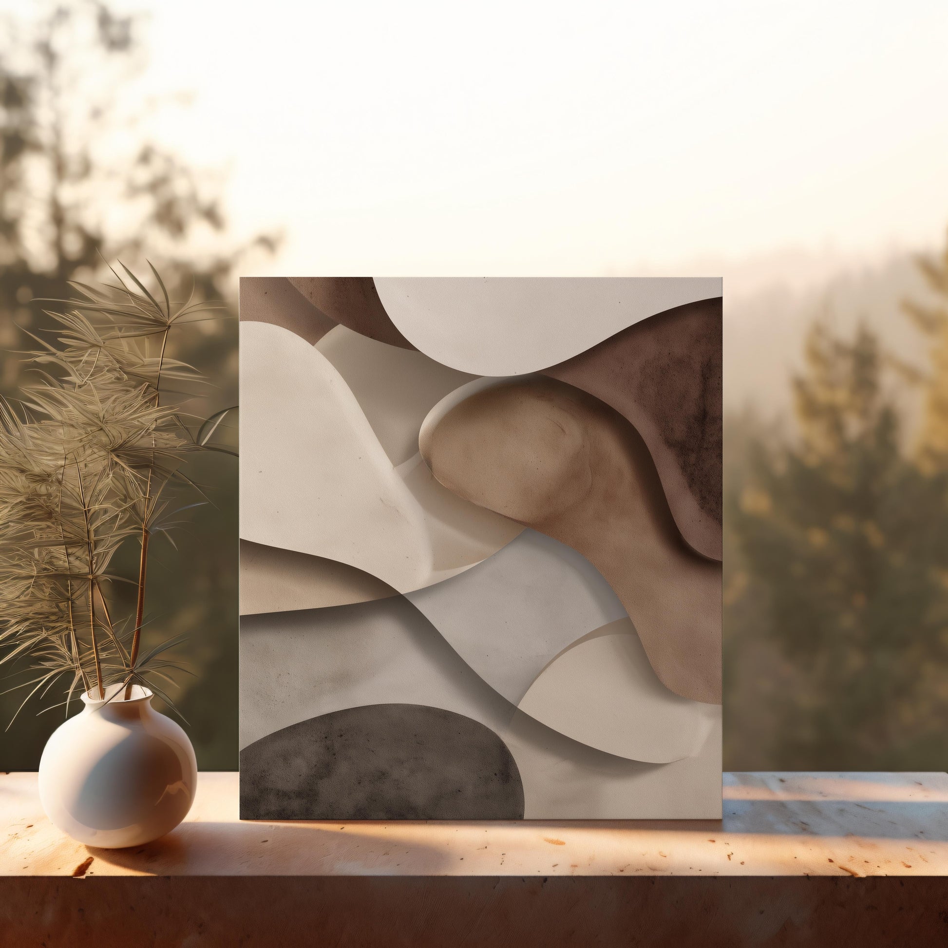 Available in multiple sizes, orientations (horizontal, vertical, and square), and three frame color options, Organic Balance adapts seamlessly to your surroundings, whether as a statement piece or a refined complement to existing décor. Sawtooth hanging hardware comes pre-installed for effortless display.