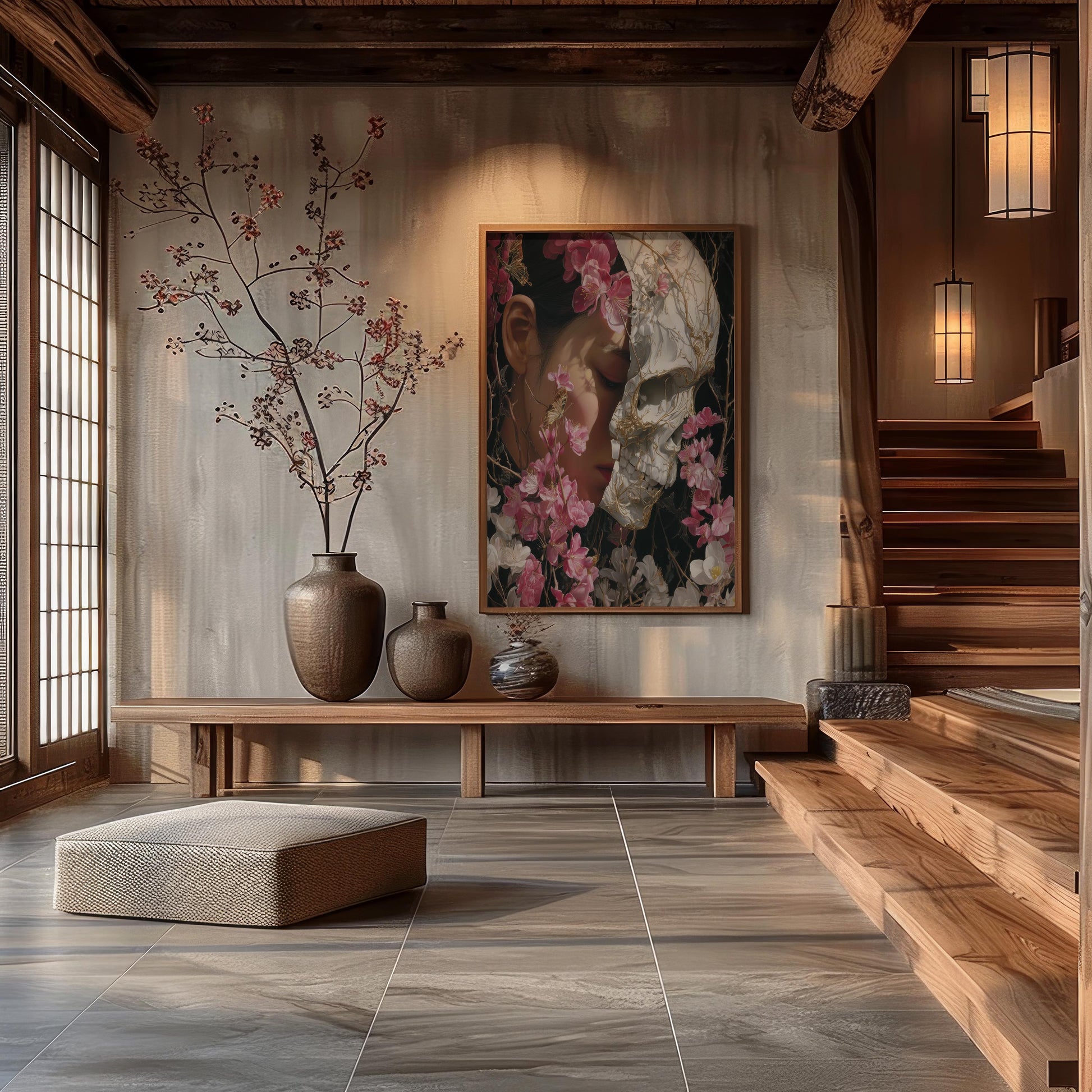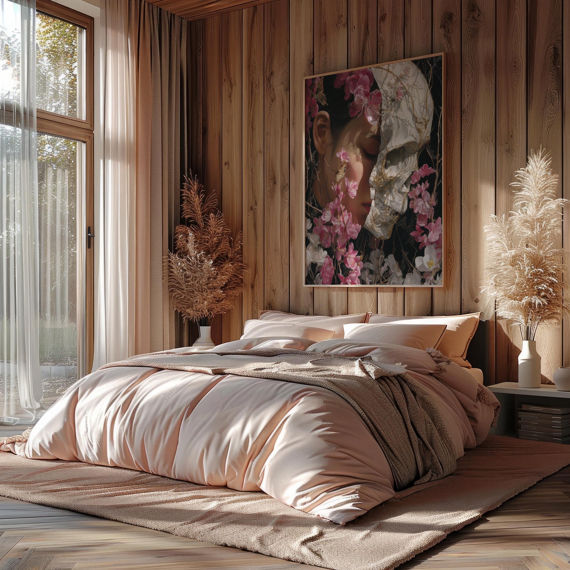 Designed to elevate any interior space, this artwork is presented on a premium cotton-polyester canvas with a special proprietary coating that ensures long-lasting, vibrant colors and crisp detail. The piece is framed in solid pinewood, crafted from sustainably sourced, Forest Stewardship Council (FSC) certified materials—an eco-friendly choice that does not compromise on quality or style.